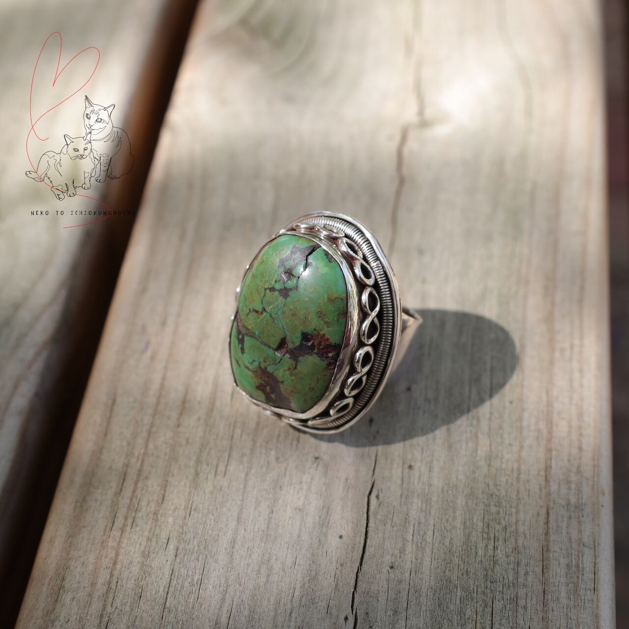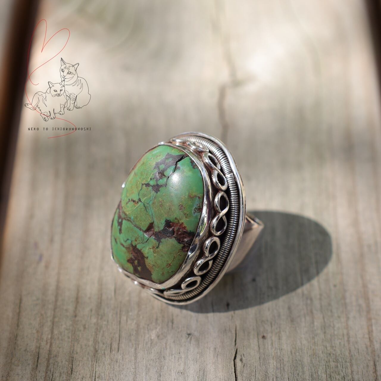 力強くエネルギーに満ち溢れている、とても美しいチベタンターコイズの指輪です。