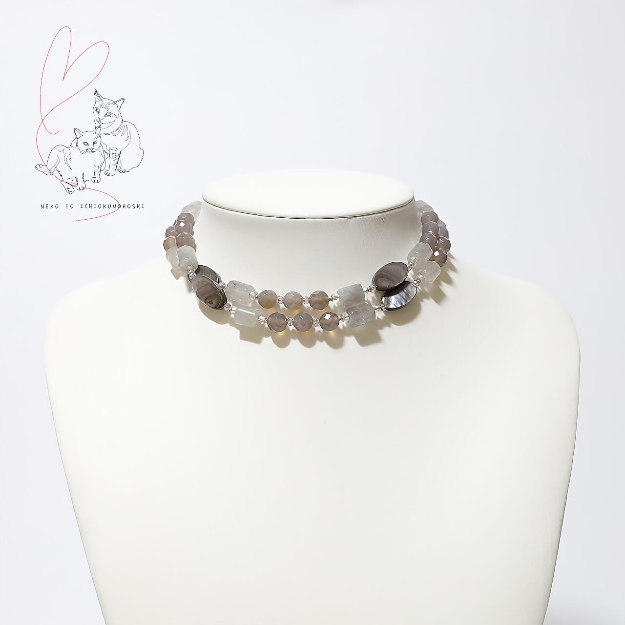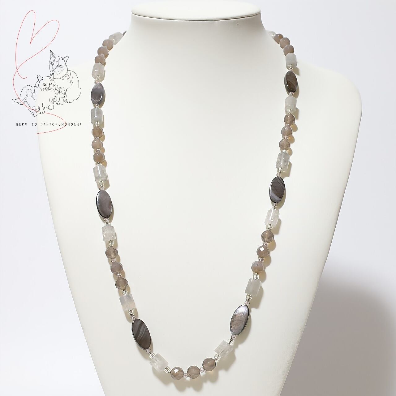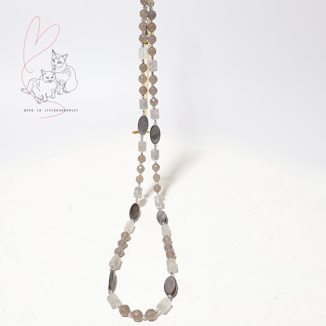 このネックレスは天然石を使用しているため、個体差、自然のクラックやインクルージョン(内包物)があること、またブラウザによって実際の色味とは異なる場合がございますので、ご了承下さい。