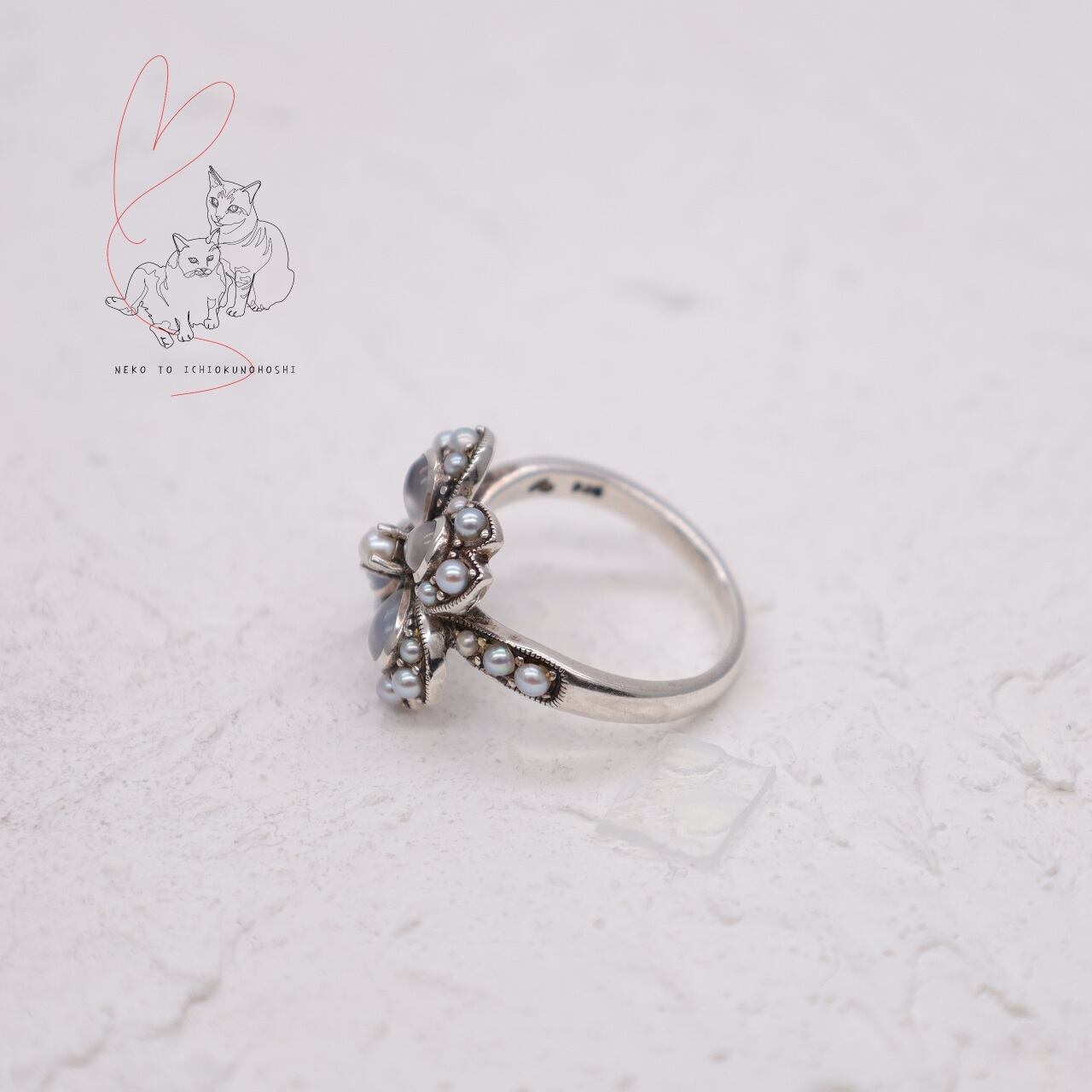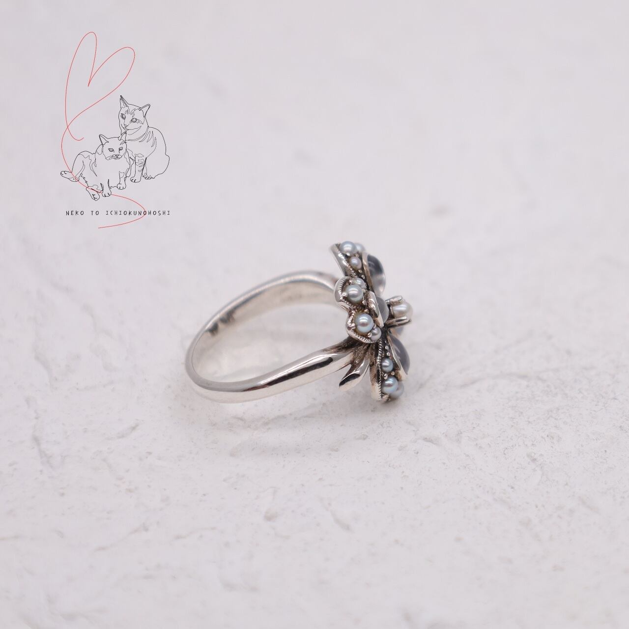 月の光の守護ムーンストーンを四葉のクローバーのモチーフで作った指輪です。