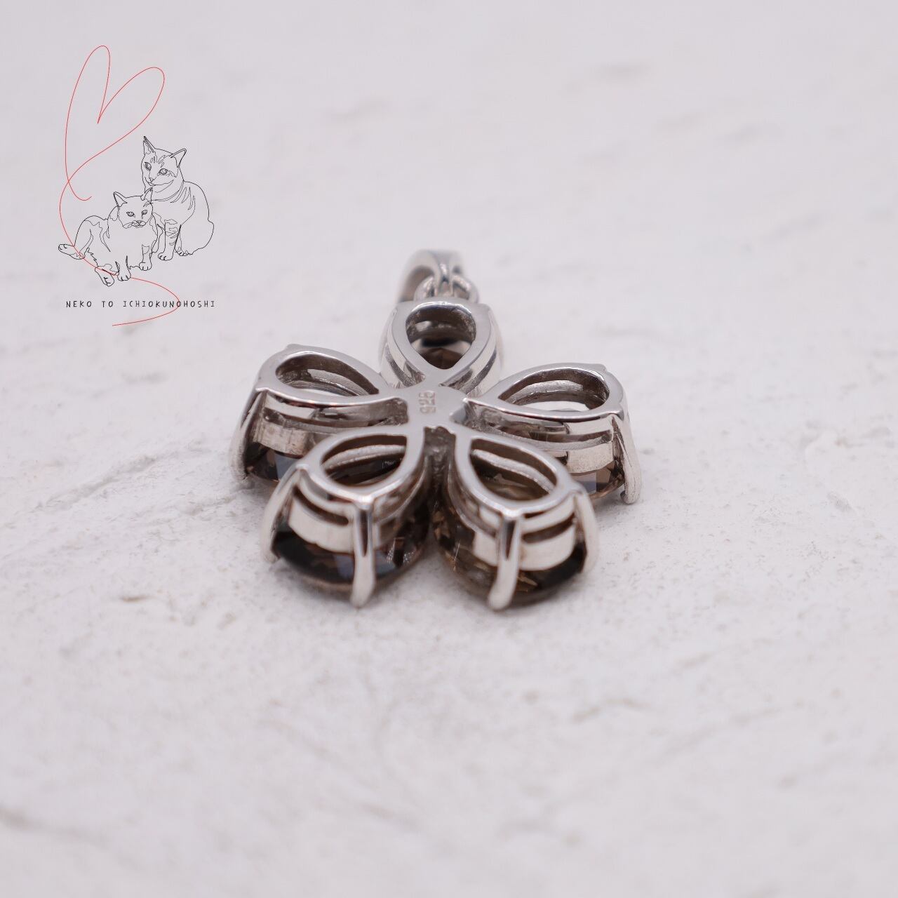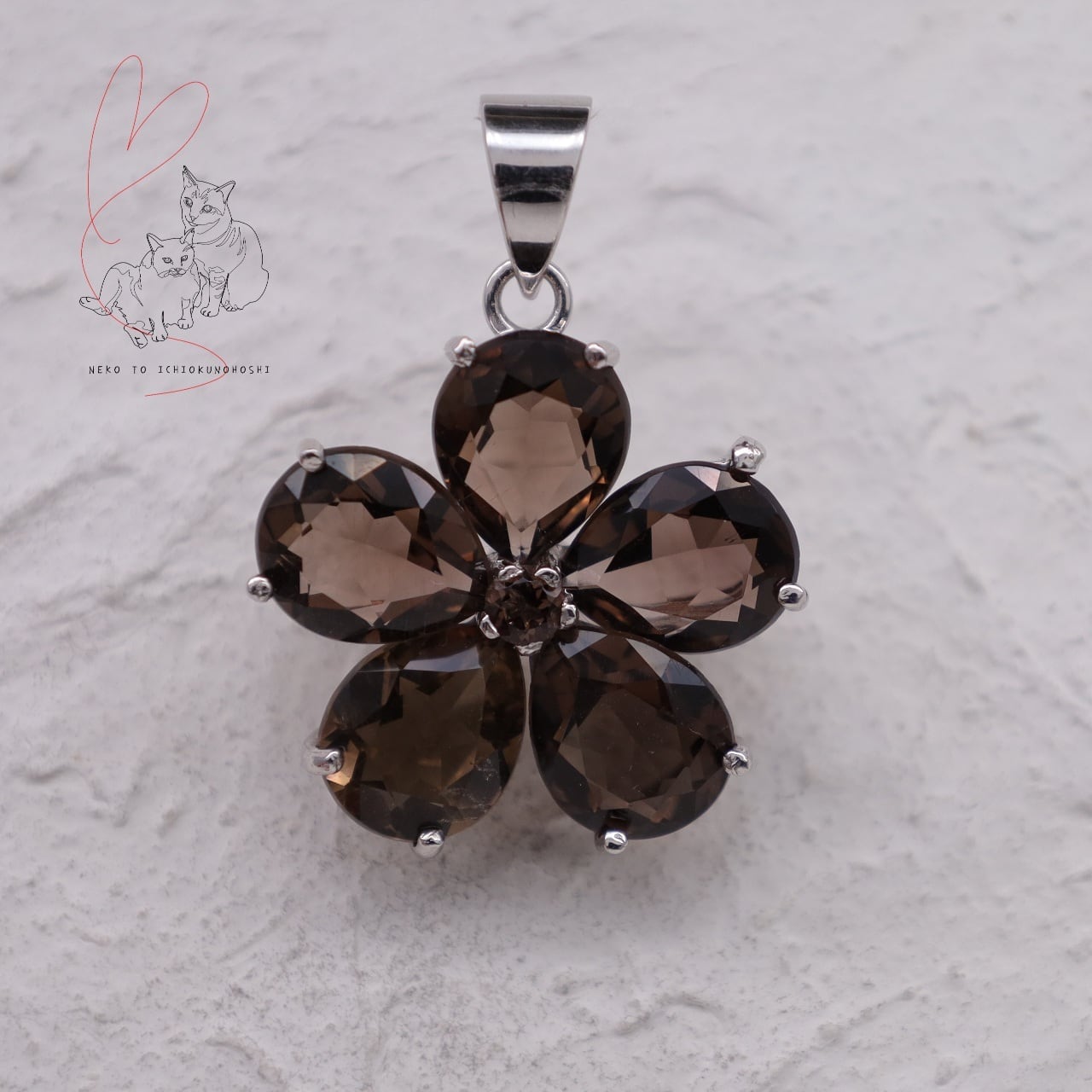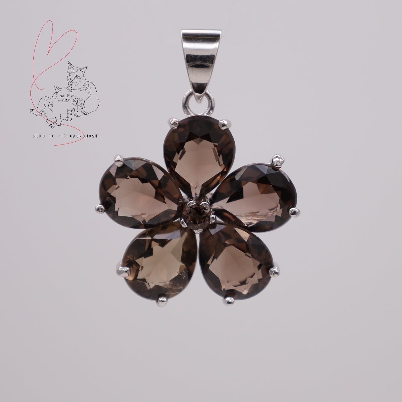 可愛らしいフラワーモチーフですが、大粒のスモーキークォーツ、ダークな色味で大人テイストのジュエリーです。