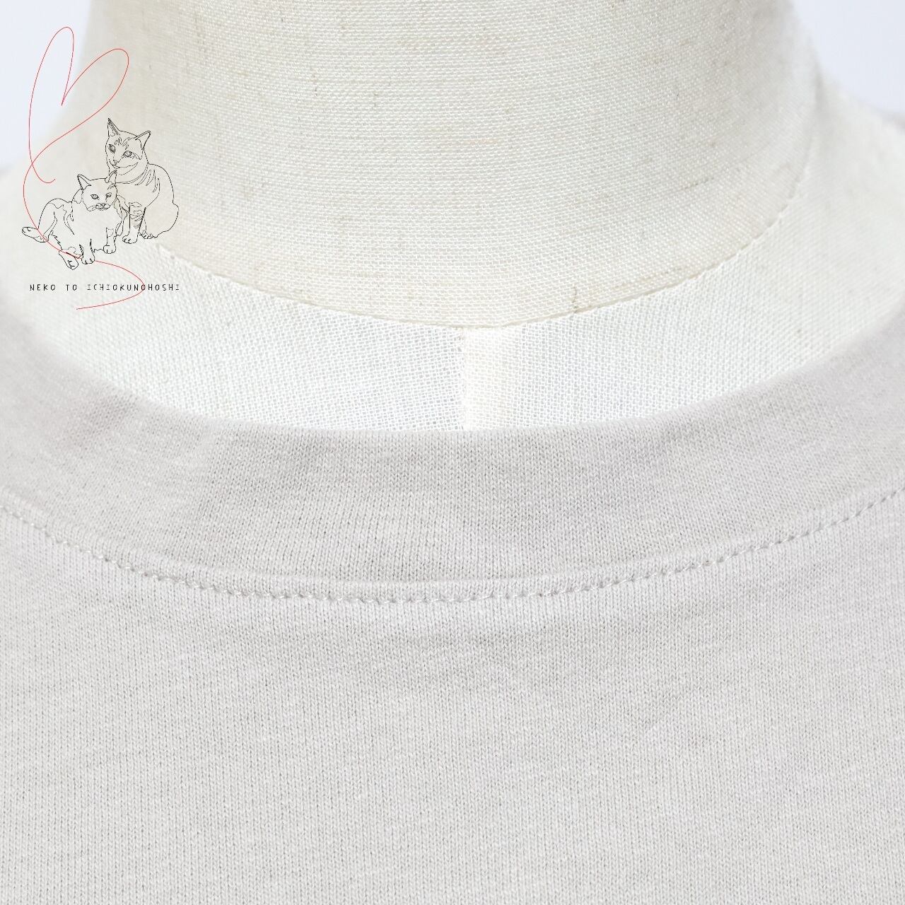 後ろ姿には毛糸玉とネズミのプリントが施され、バックスタイルにもさりげないアクセントが光ります。