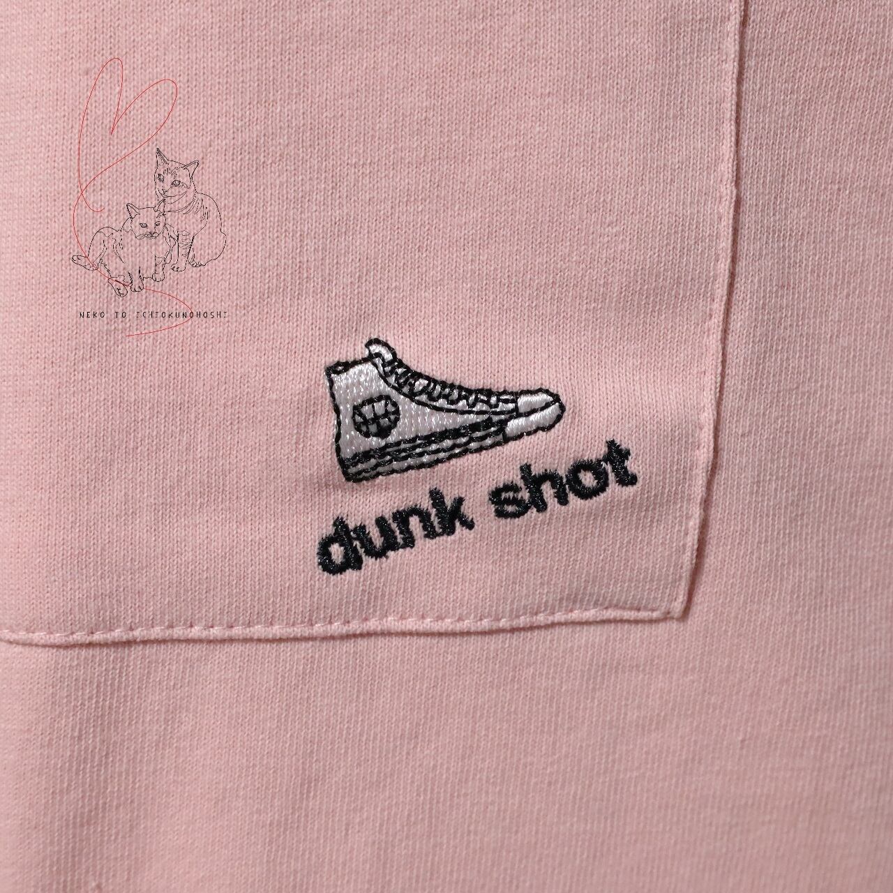 ダンクシュートをキメるナマケモノ刺繡Tシャツ ピンク