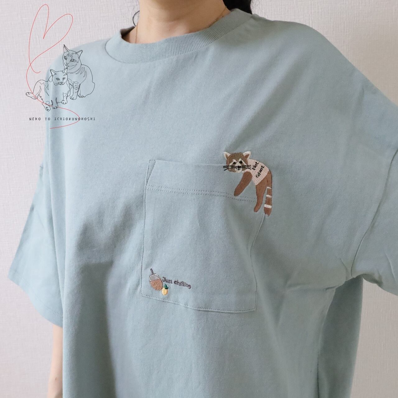 アンナヴァン‐Lupilien- なんかカワイイ まったりのんびりアライグマの刺繡Tシャツ