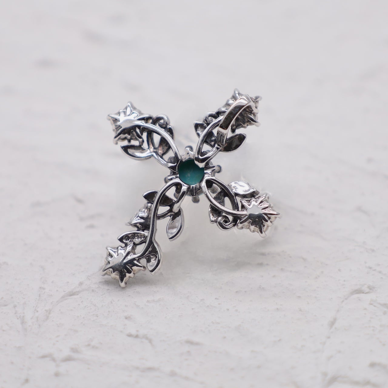 花のモチーフをクロスにして、中央にターコイズをあしらったペンダントトップです。