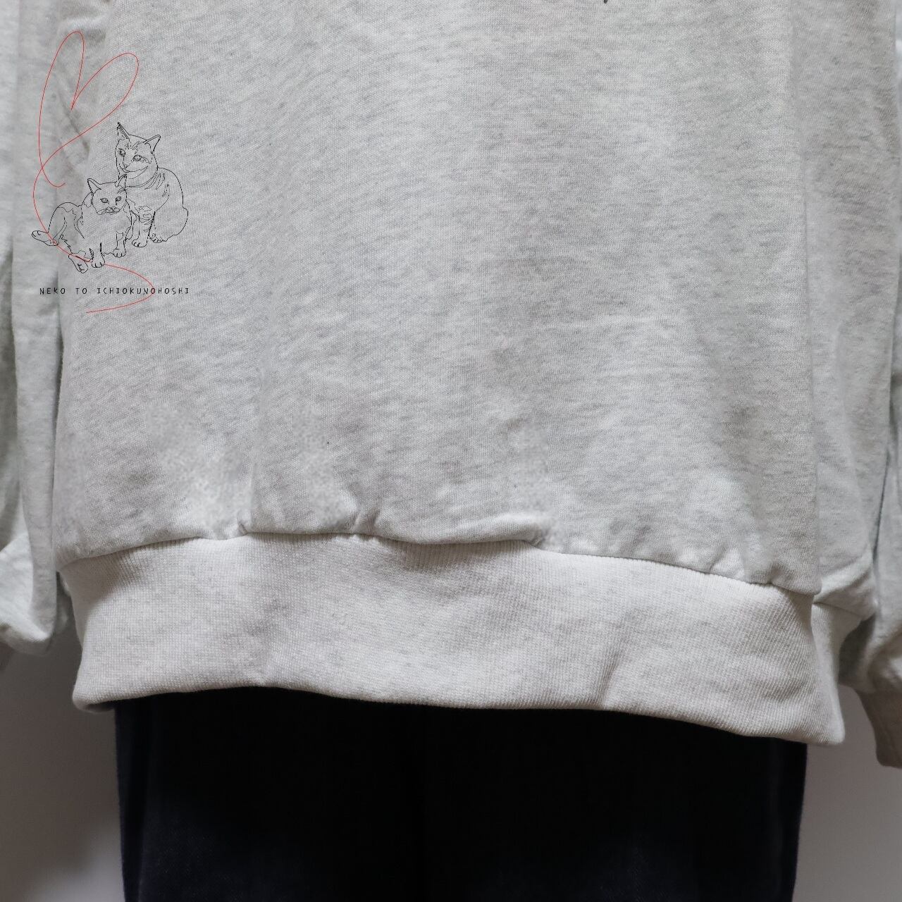 猫プリント ゆったりシルエットがかわいい長袖スウェット【オートミール】