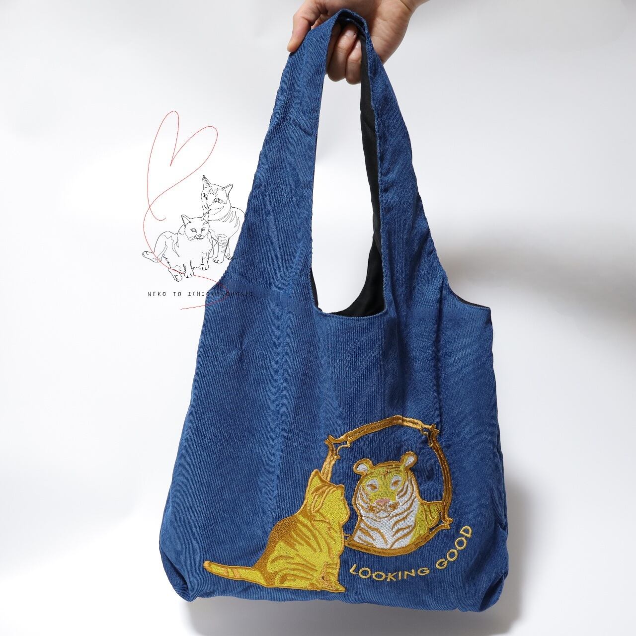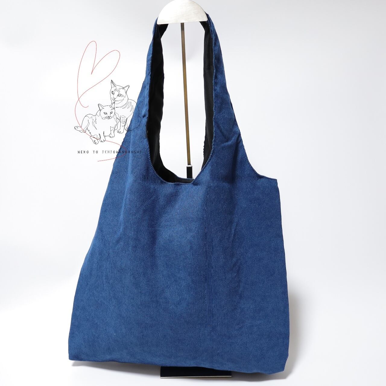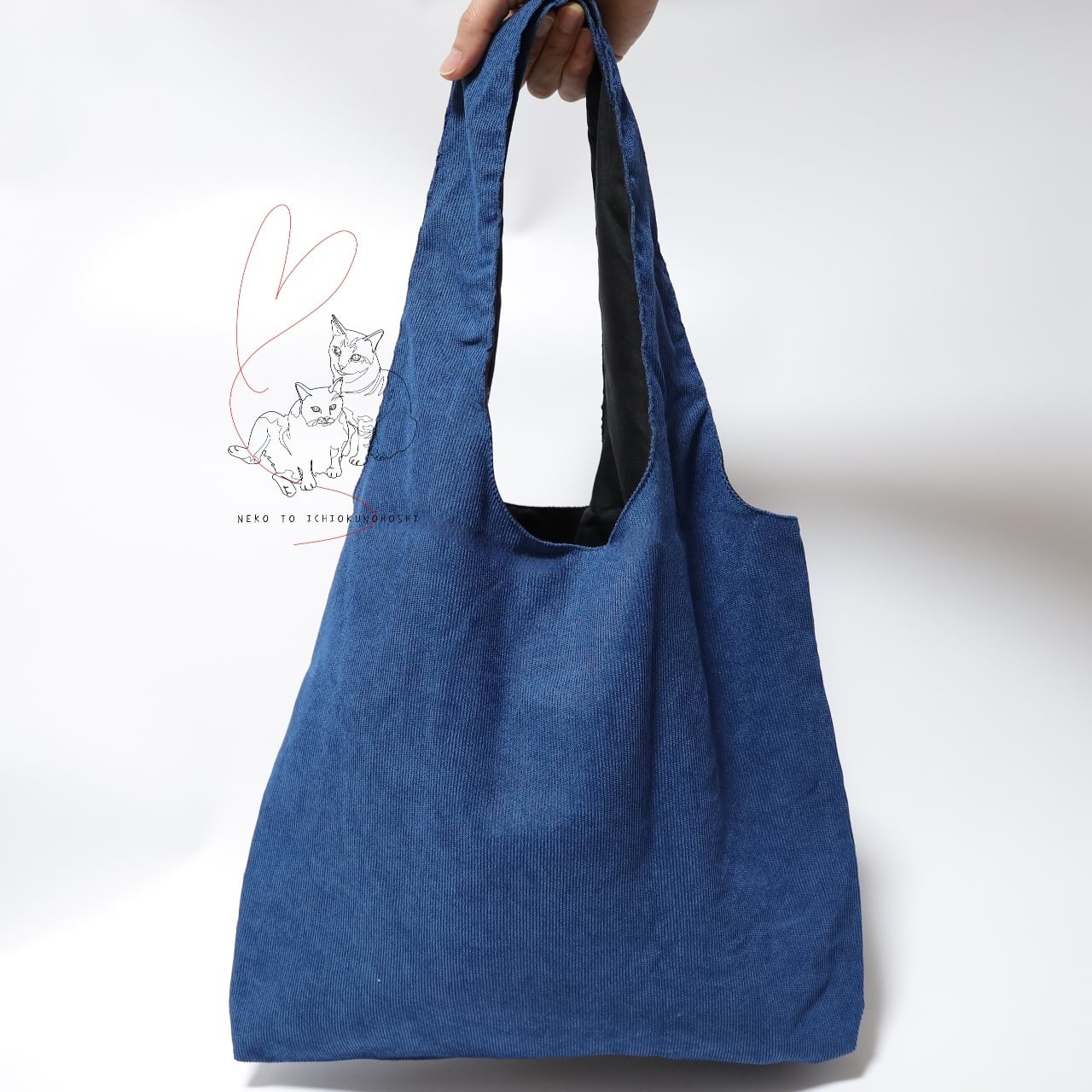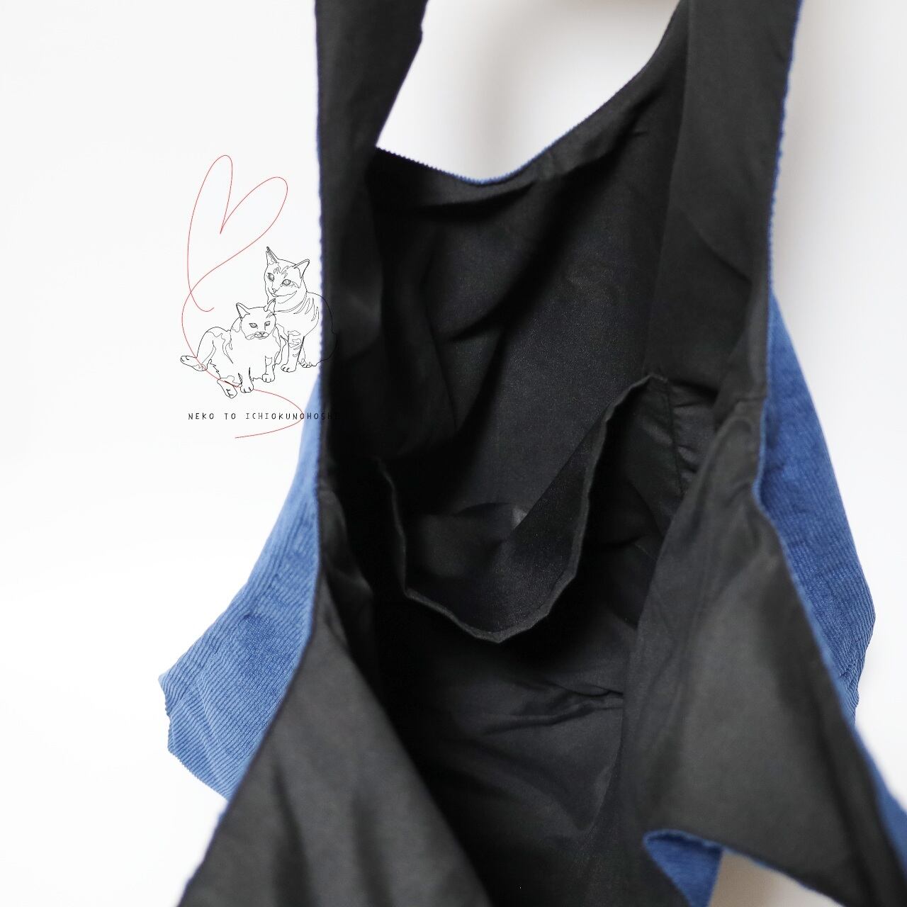 Jubilee 猫デザイン刺繡コーデュロイトートバッグ ネイビー