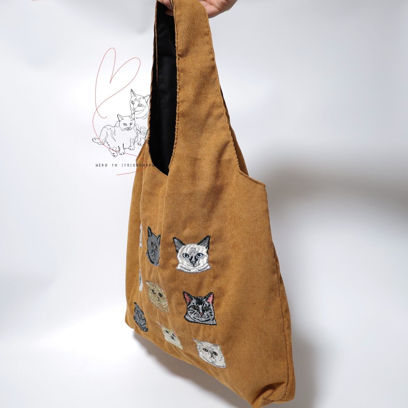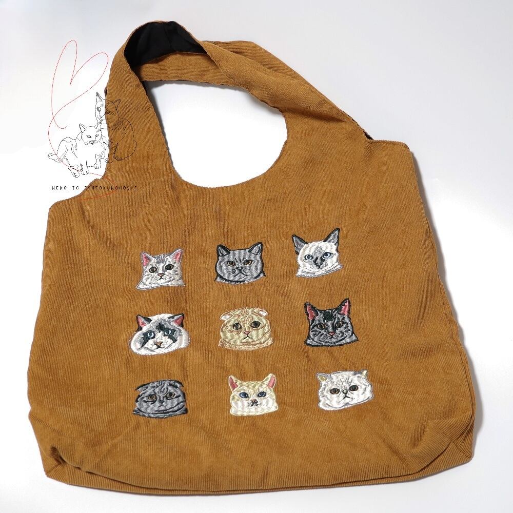 Jubilee 猫デザイン刺繡コーデュロイトートバッグ ブラウン