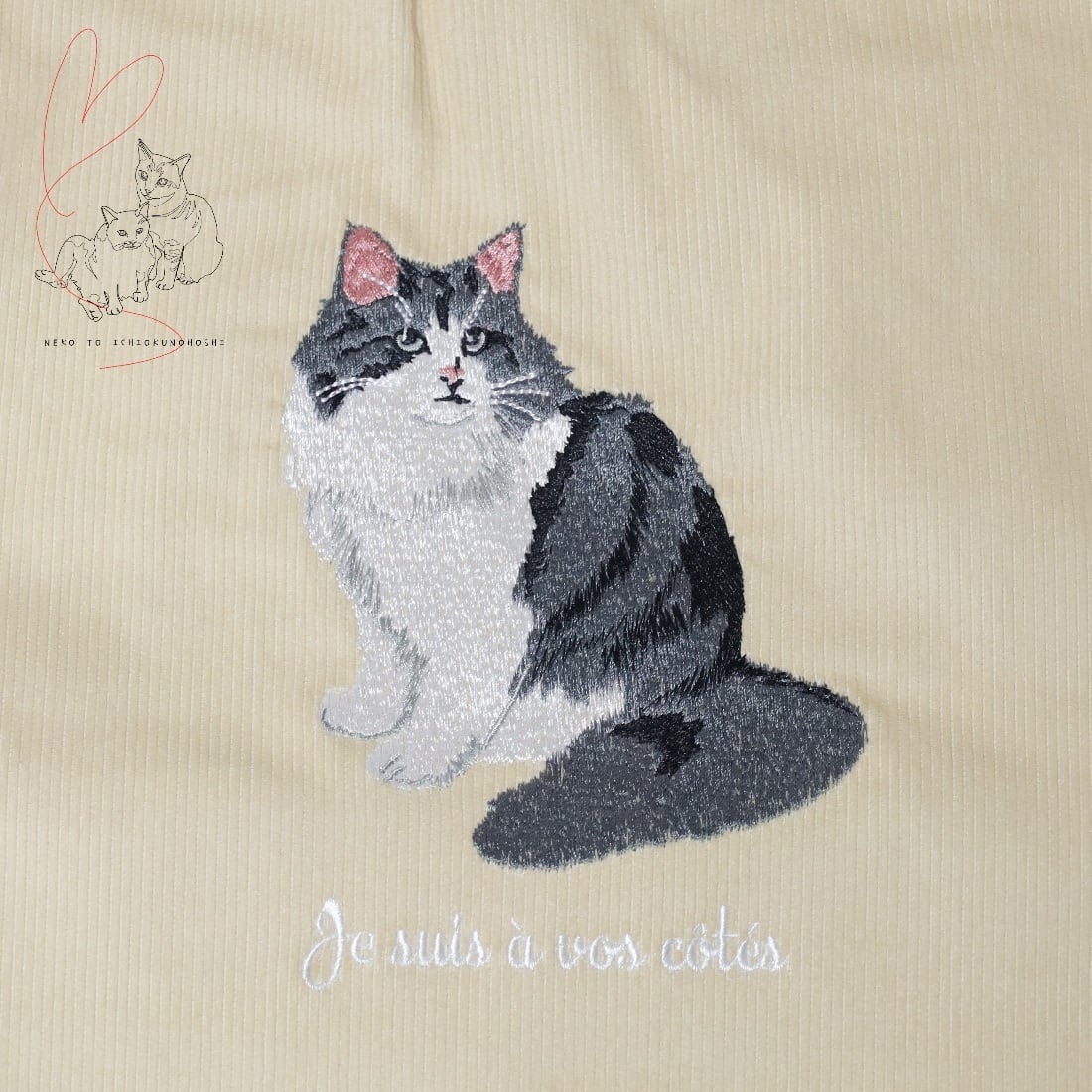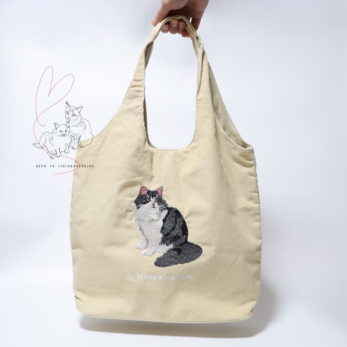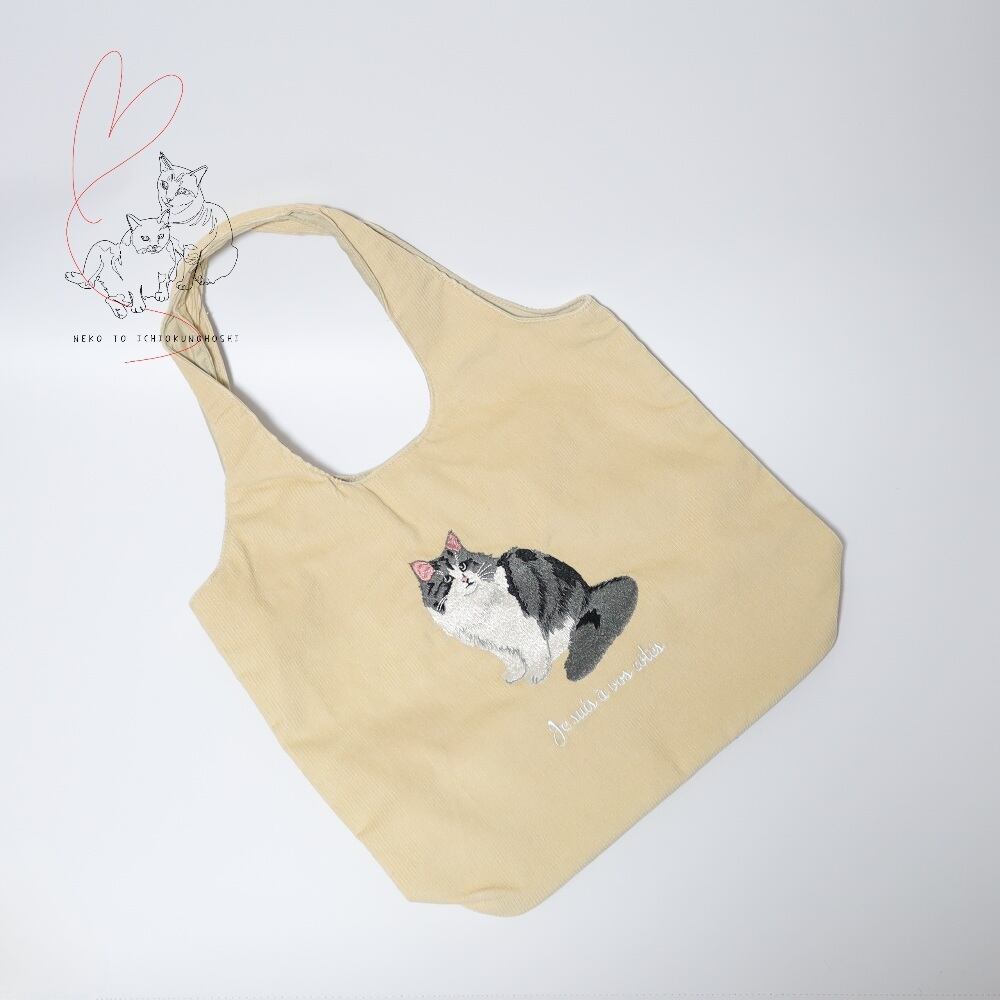 COCOALT 猫デザイン刺繡コーデュロイトートバッグ ブリティッシュ