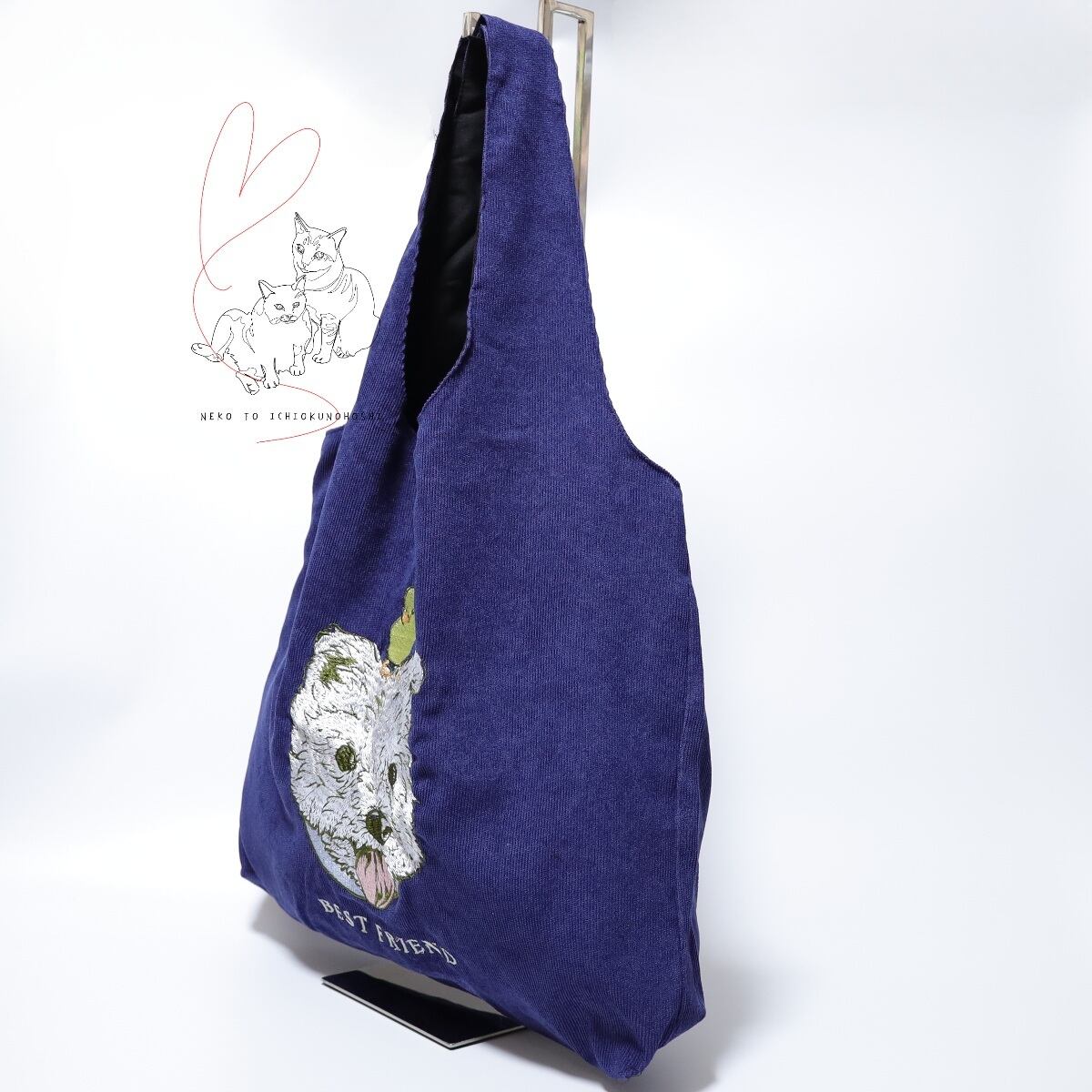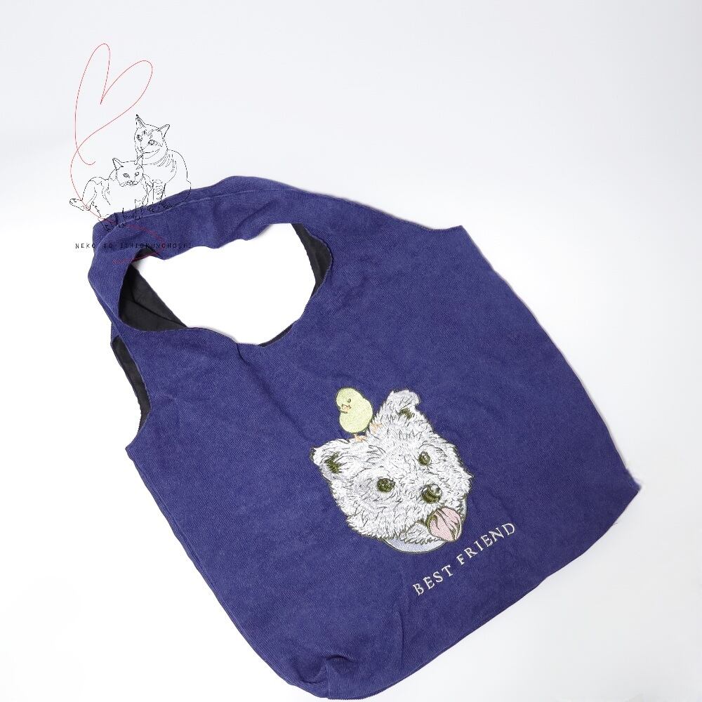 Jubilee 犬デザイン刺繡コーデュロイトートバッグ ネイビー