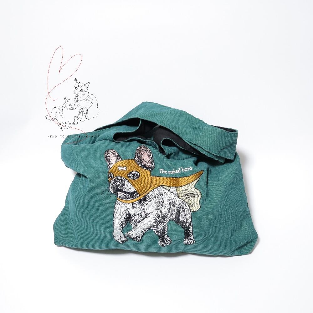 Jubilee 犬デザイン刺繡コーデュロイトートバッグ グリーン