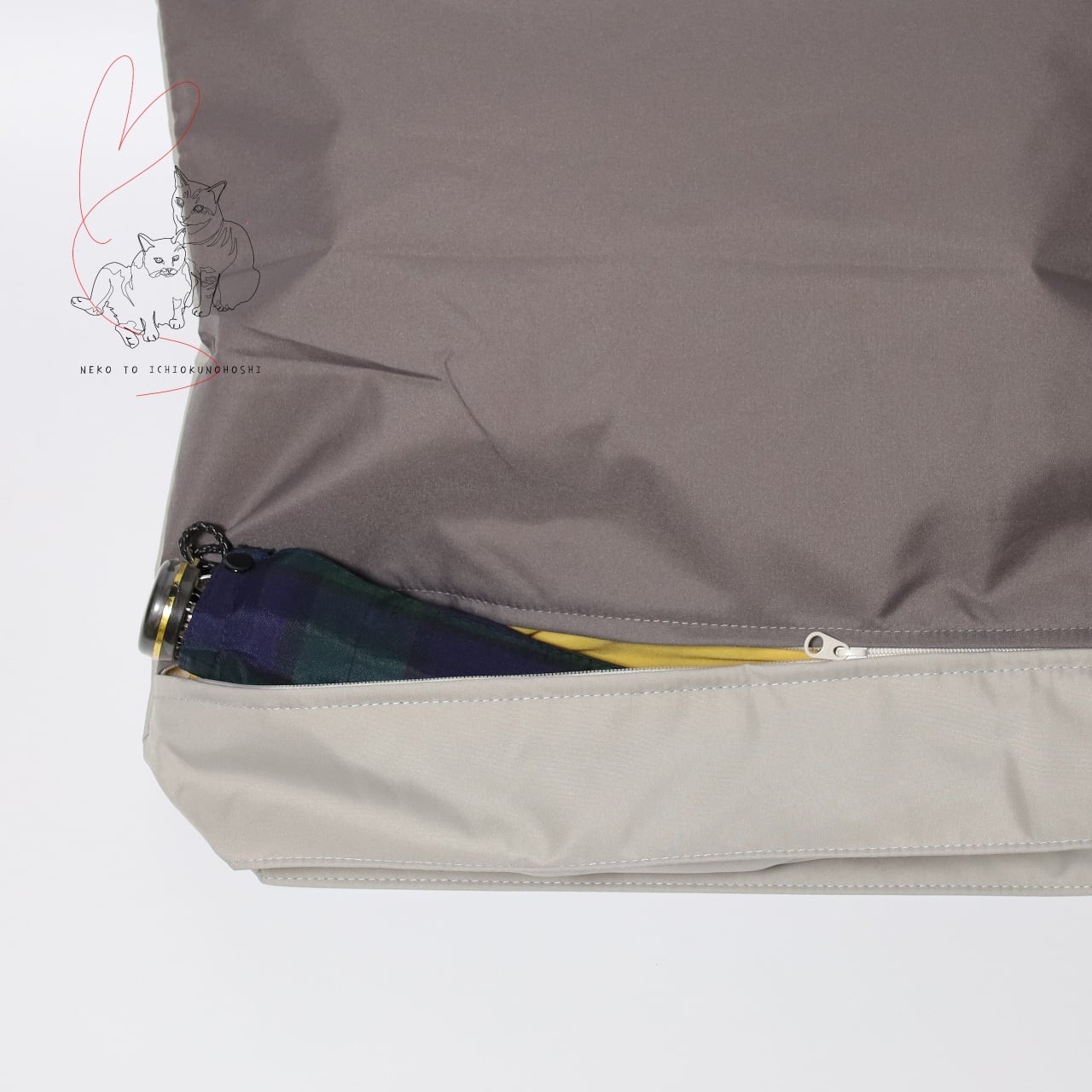 防水・撥水加工がされた生地を2枚重ねて使用しているので、非常に水漏れがしにくくなっています。 雨の日のご使用はもちろん、中に水滴のついたペットボトルなどを入れても滲み出てくることがありません。