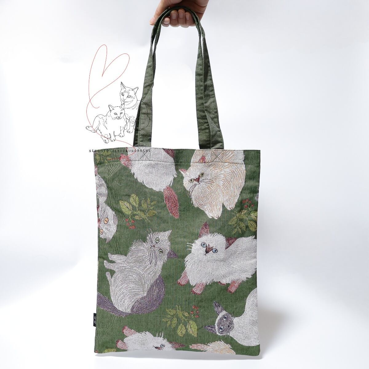 Matsuo Miyuki Rectangle tote bag Cat&Leaf ゴブラン織りトートバッグ