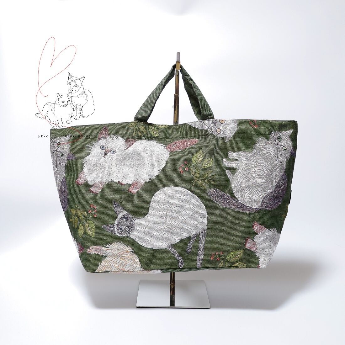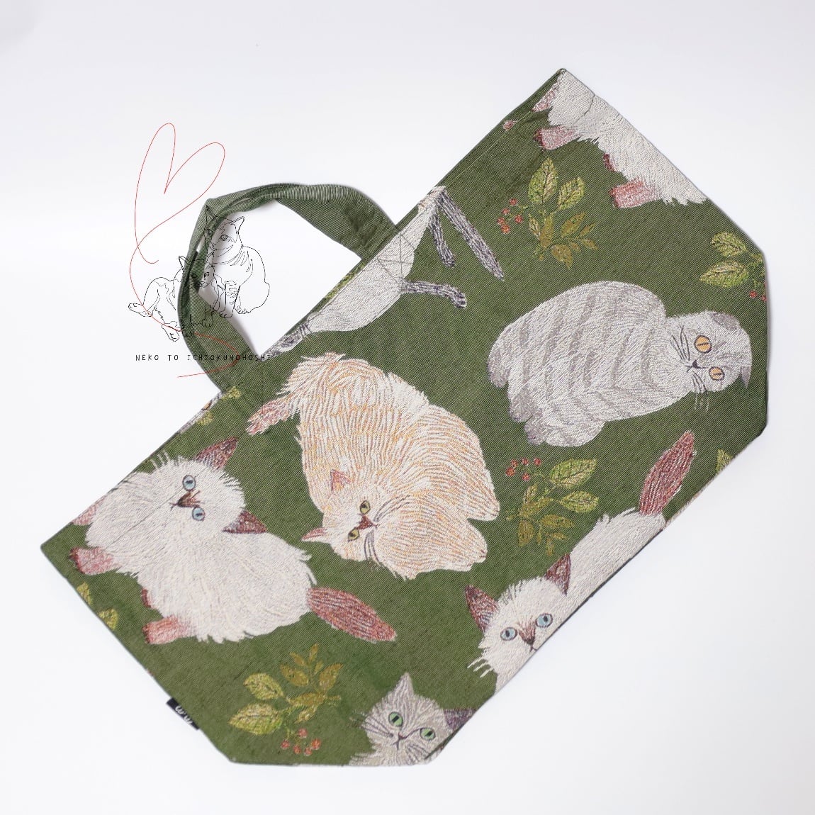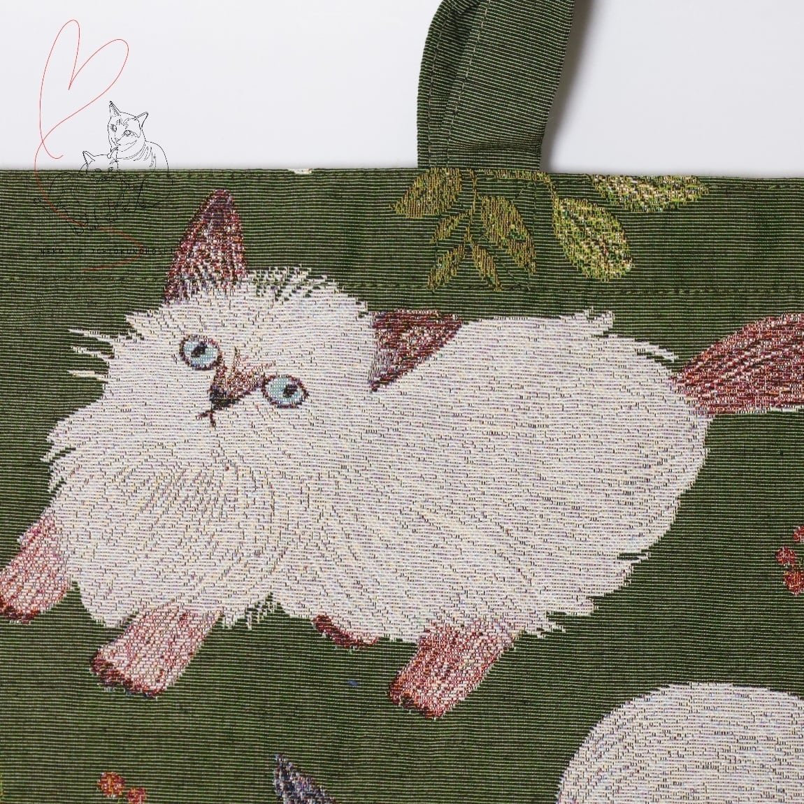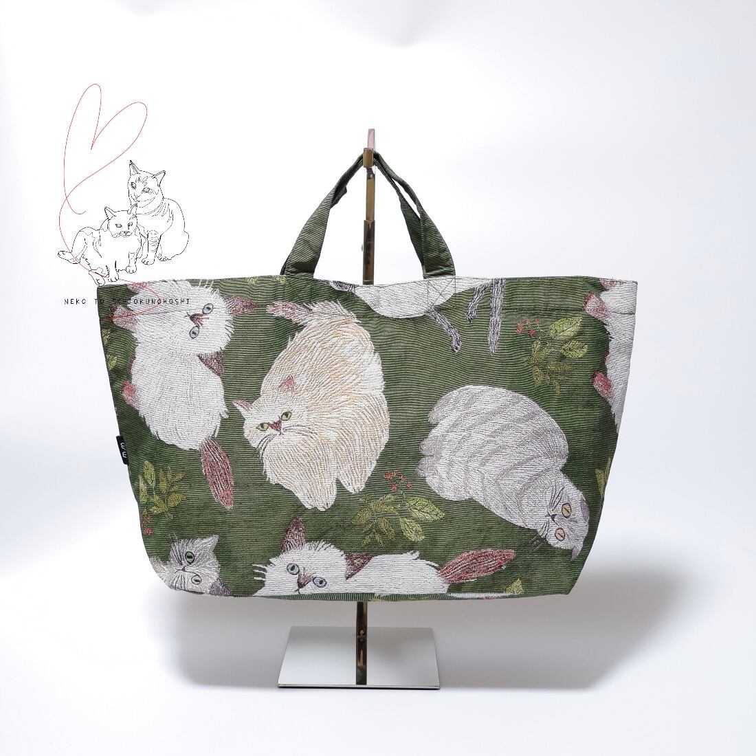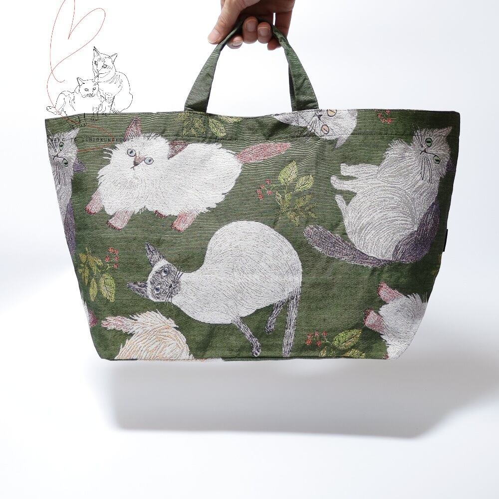 Matsuo Miyuki Boat and Tote Cat&Leaf ゴブラン織り舟形トートバッグ