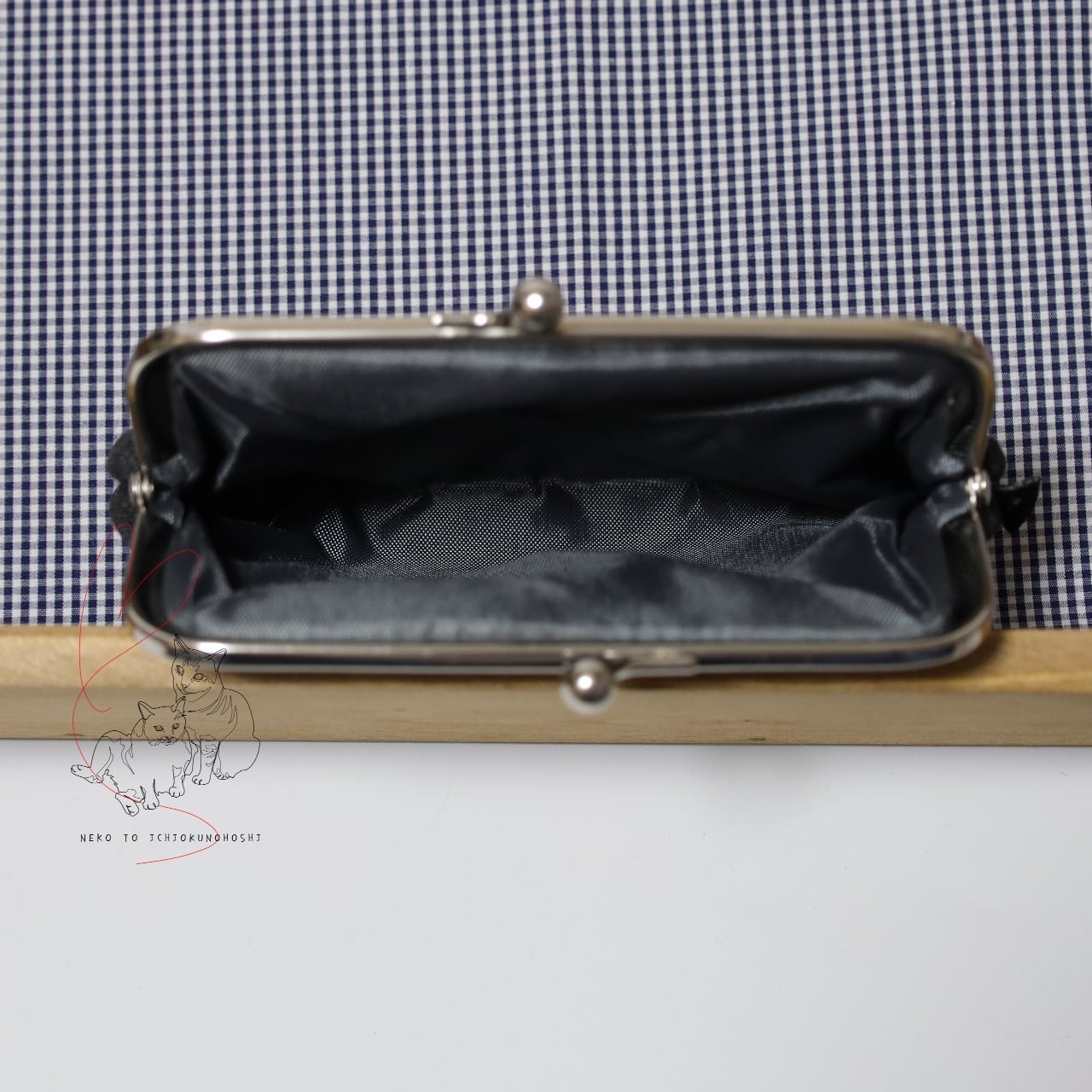 松尾ミユキさんの描くネコたちをがま口ポーチに織り込みました。