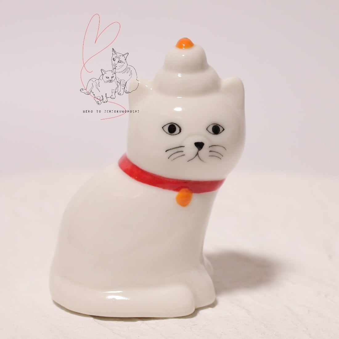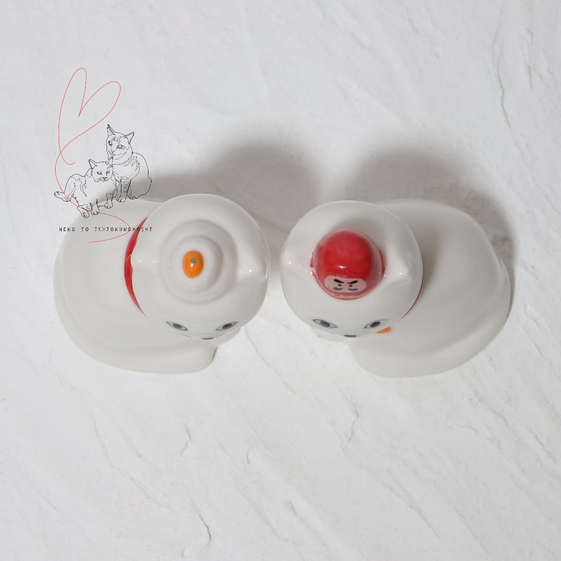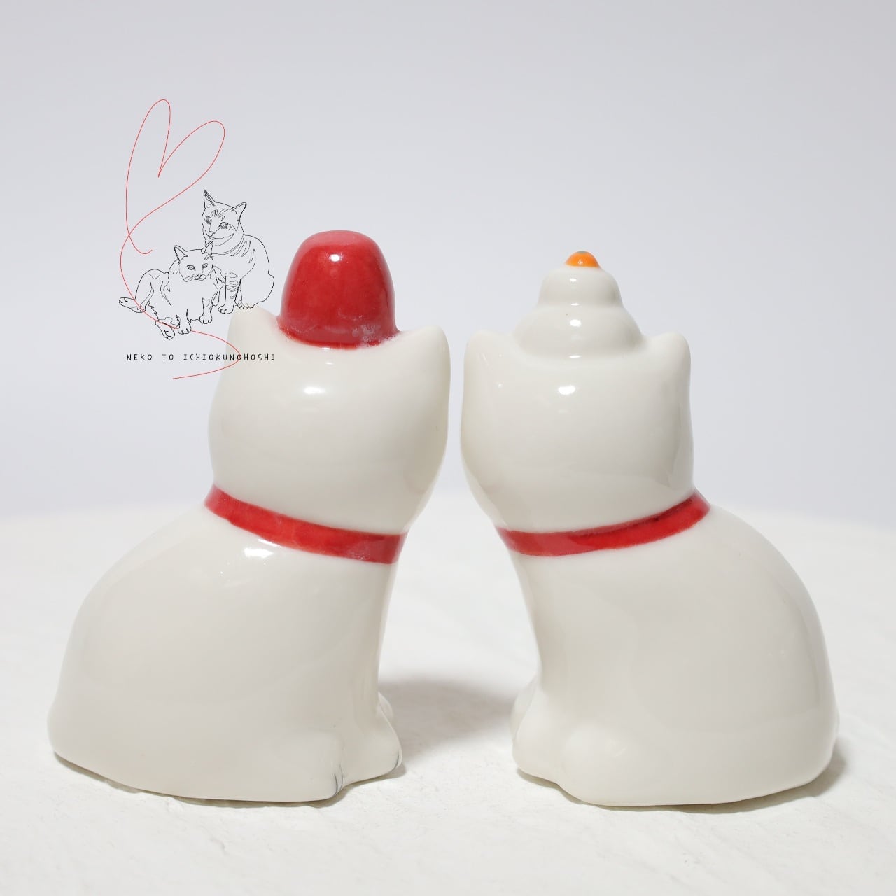 磁器製の、2匹の猫が並ぶ愛らしいお正月オブジェです。