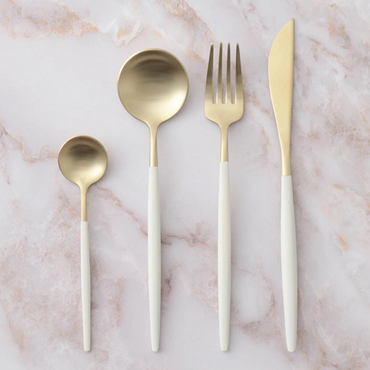 18-10 ステンレス カトラリー ピンクゴールドxクリーム ギフト4本セット