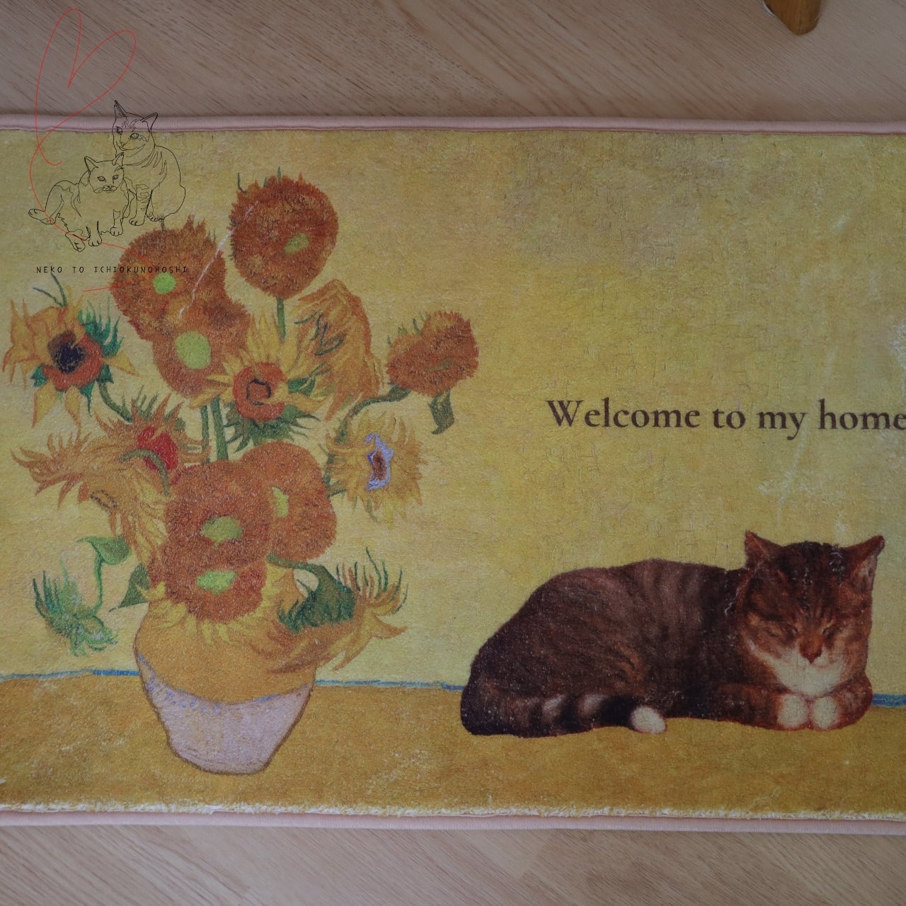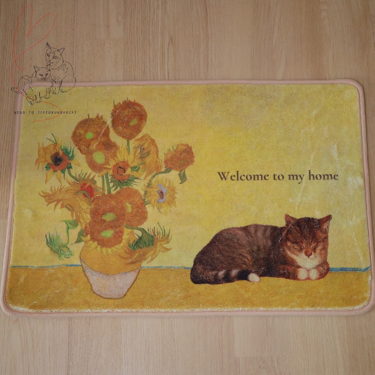 愛らしい猫のデザインを使用したもこもこ起毛マット。