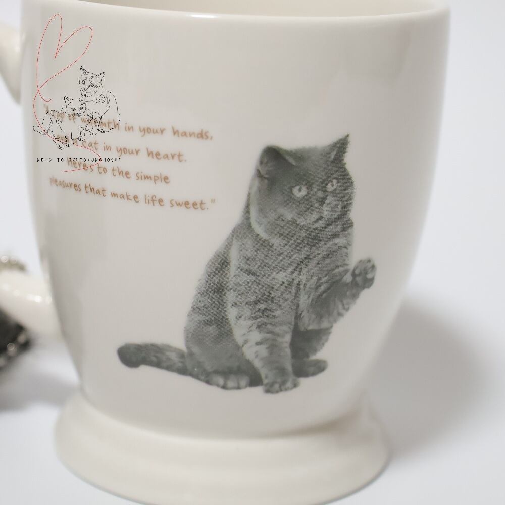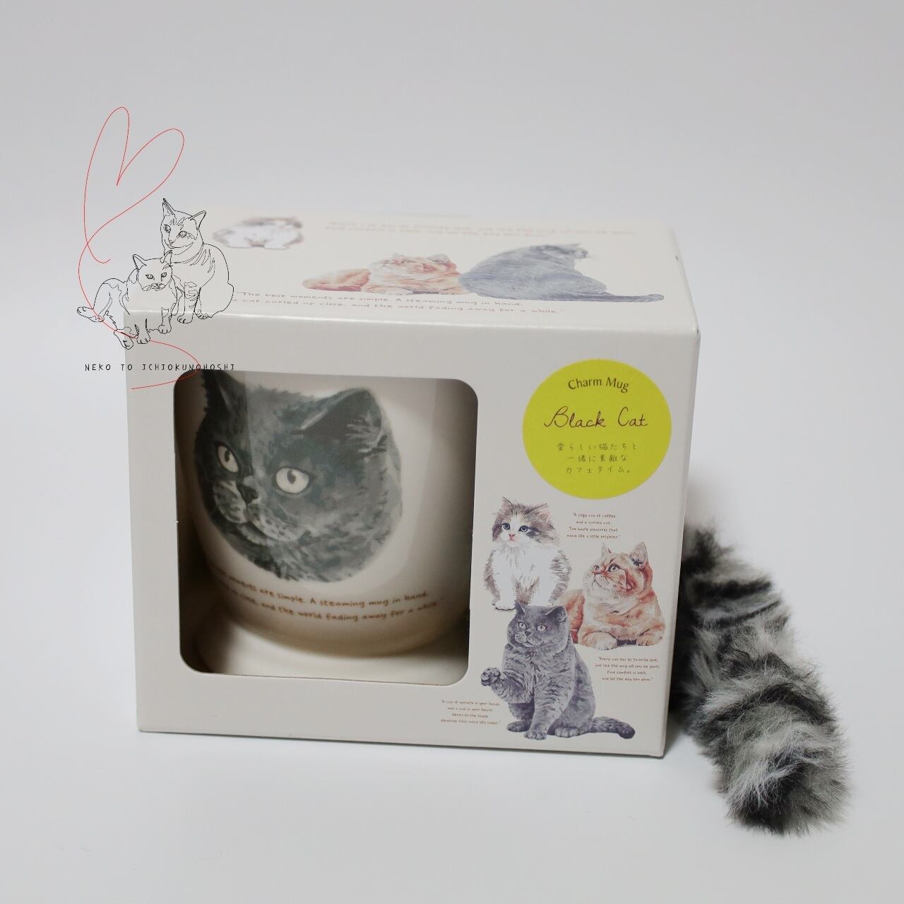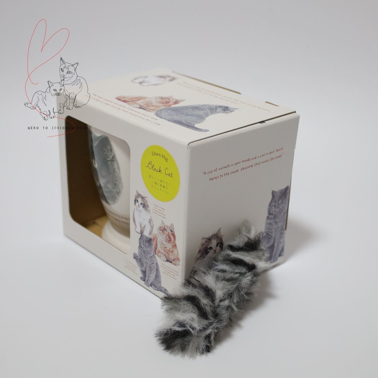 マグカップの両面には可愛いネコのデザインが描かれ、取っ手には自由に形を変えられるしっぽ付き。