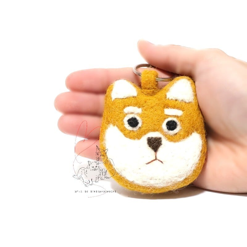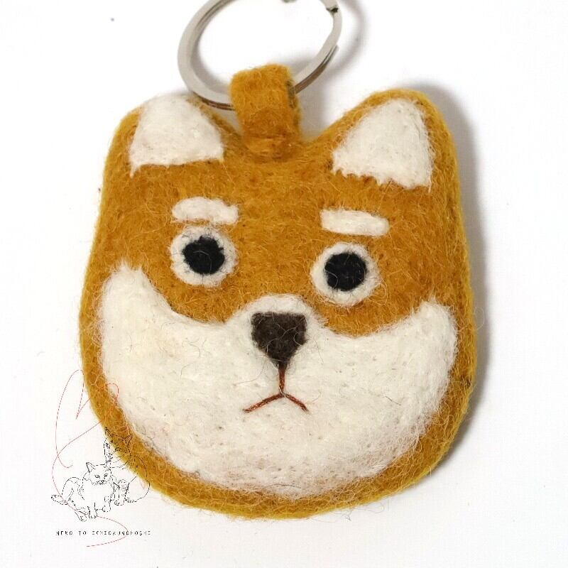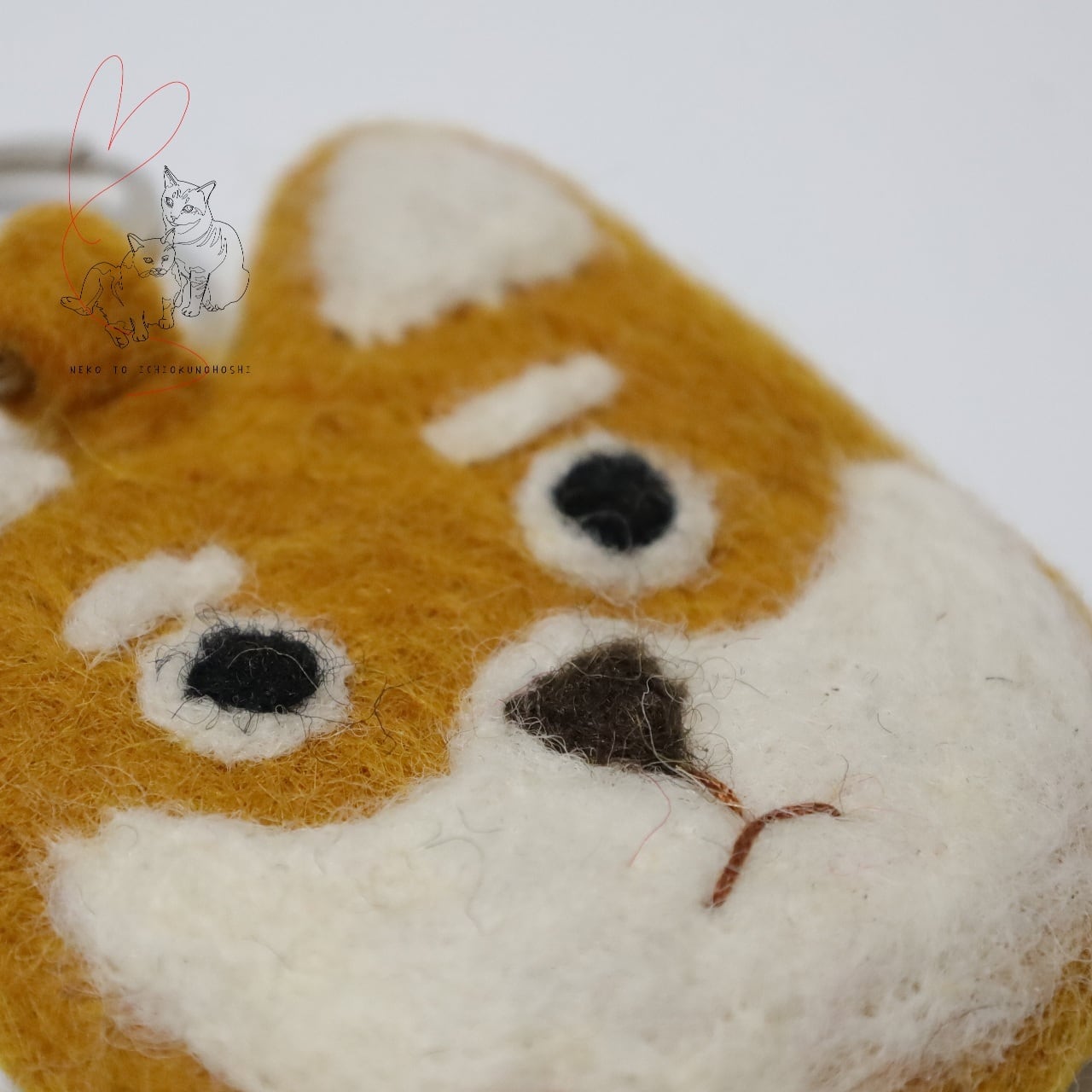 やさしい風合いのフェルト素材で作られた、フェイスキーホルダー犬フェイスキーホルダー。
