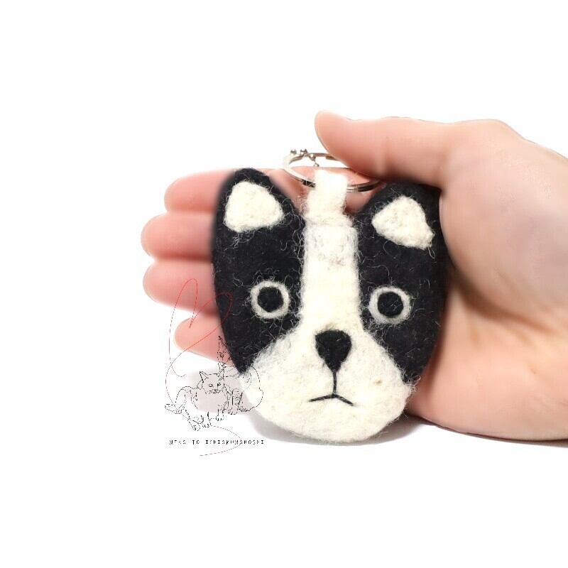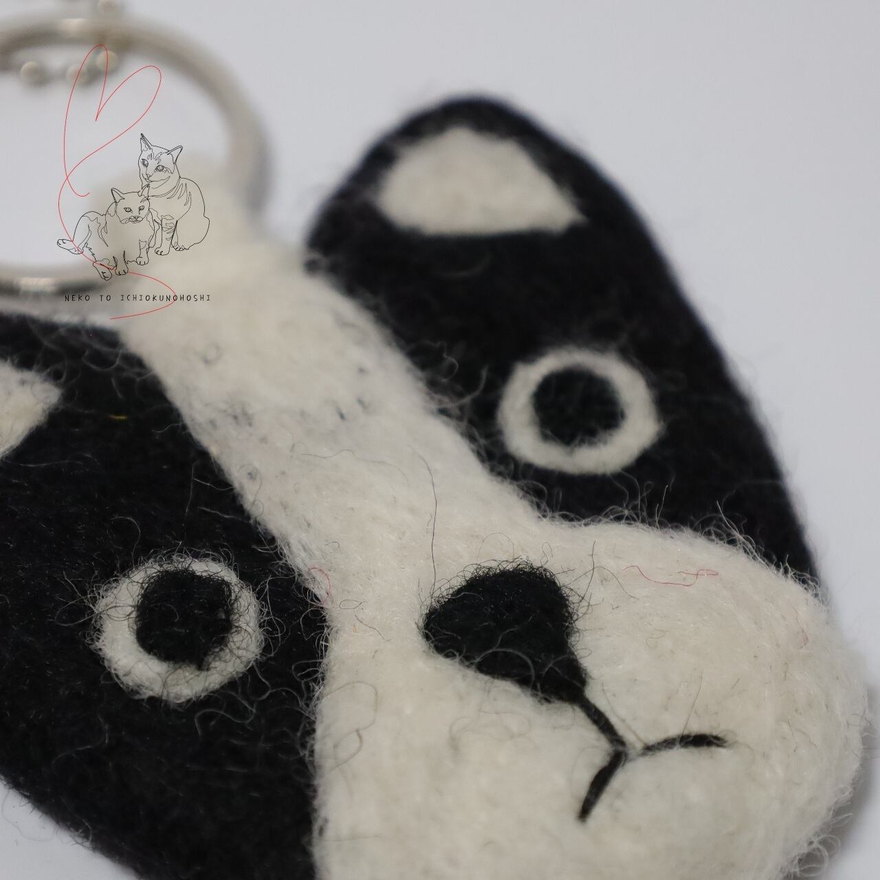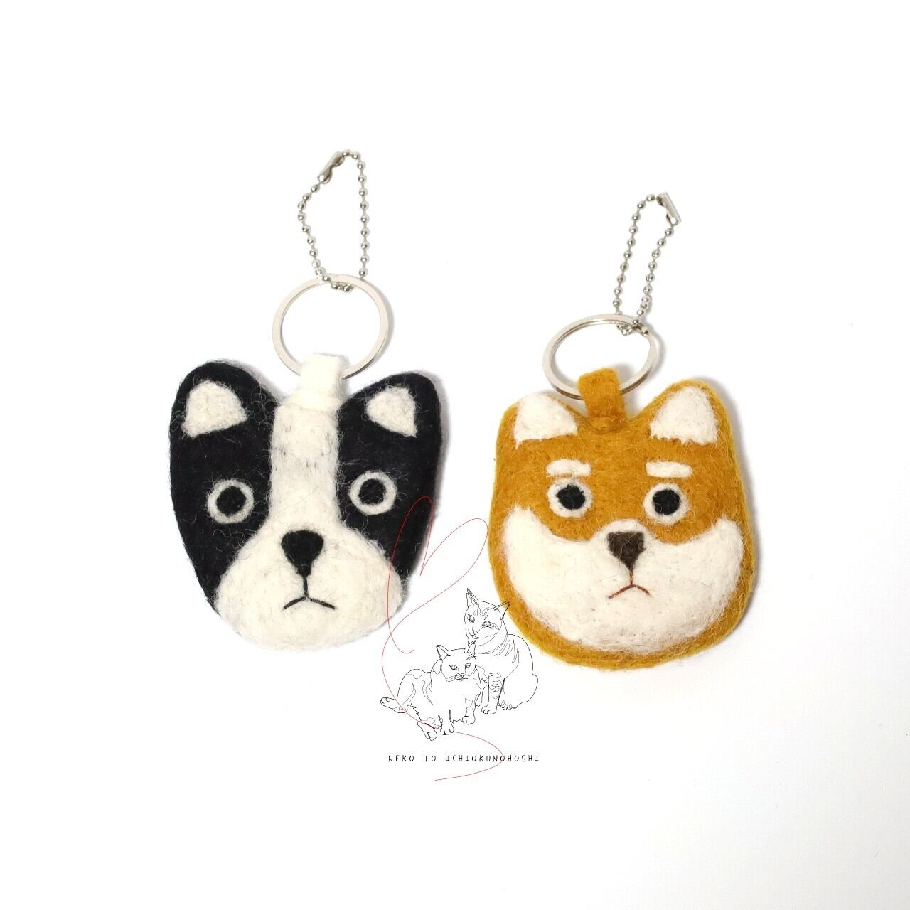 ハンドメイド 羊毛フエルトのキーチャーム ボストンテリア(黒白)/柴犬(茶白)