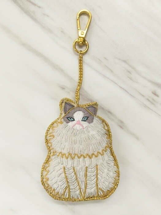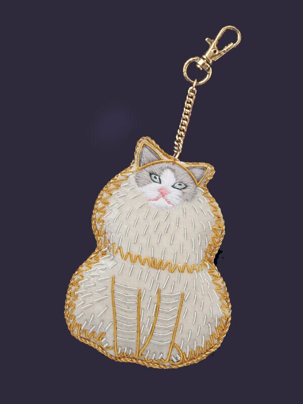 幸せをよぶ ザリ刺繍 バッグチャーム(ネコペルシャ)
