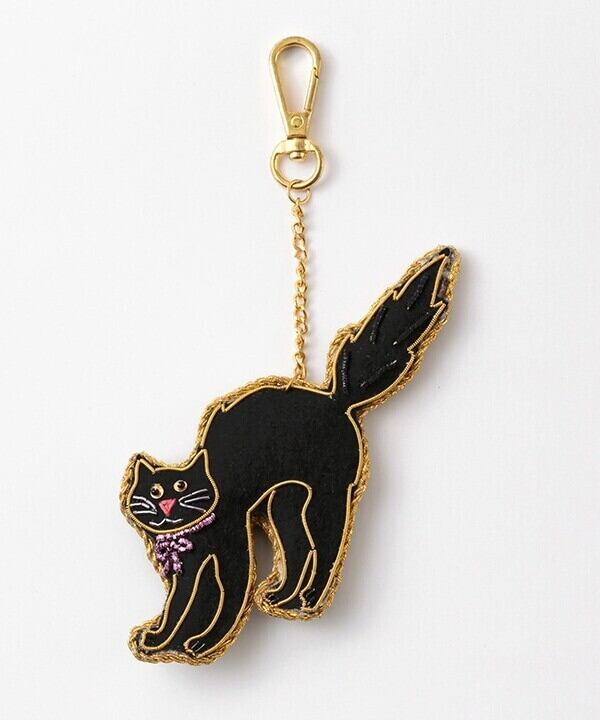 幸せをよぶ ザリ刺繍 バッグチャーム(クロネコ)
