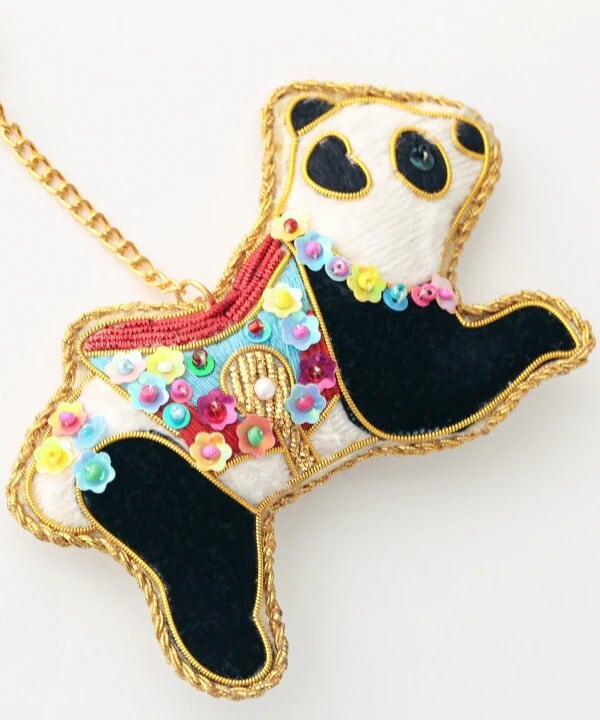 幸せをよぶ ザリ刺繍 バッグチャーム(パンダ)INDIA