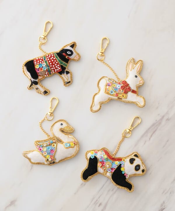 幸せをよぶ ザリ刺繡 バッグチャーム/キーチャーム 白馬