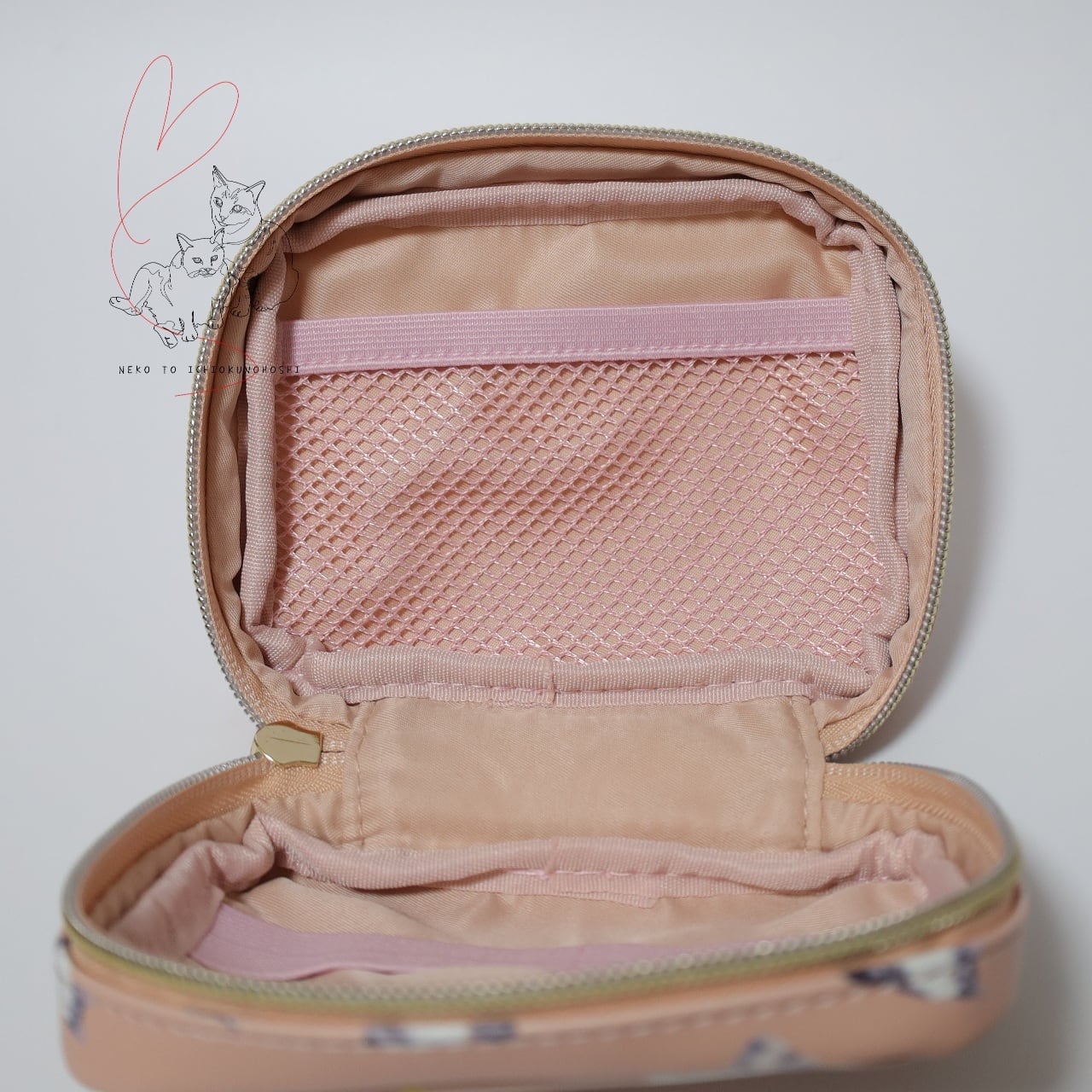 ピンクのポーチは、可愛くて収納しやすく機能的。