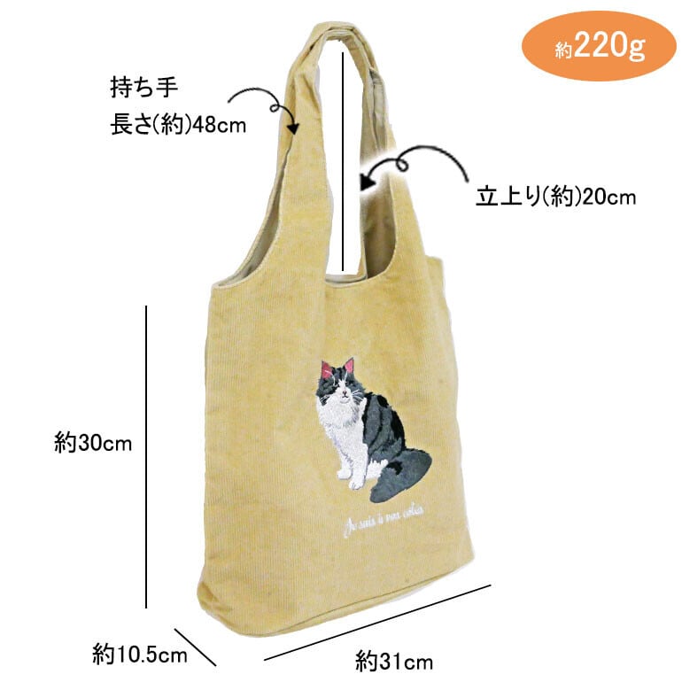 Jubilee 猫デザイン刺繡コーデュロイトートバッグ ブラウン