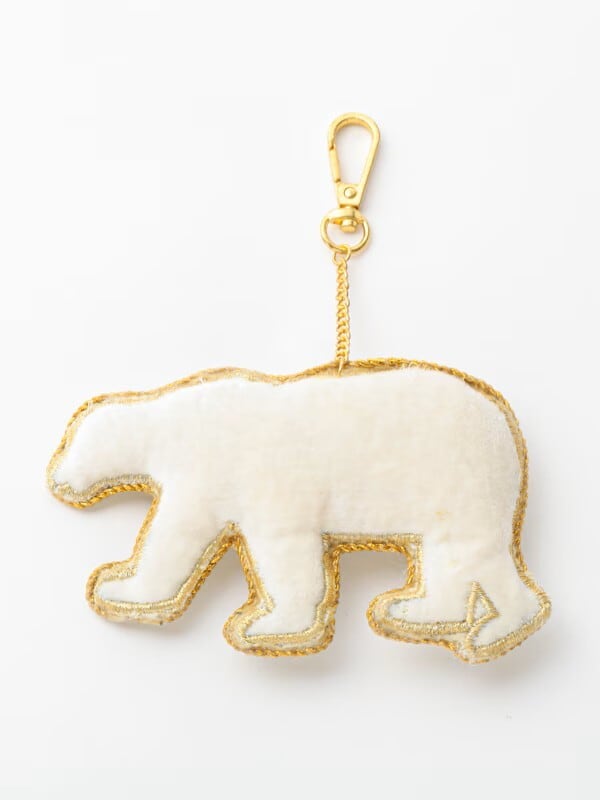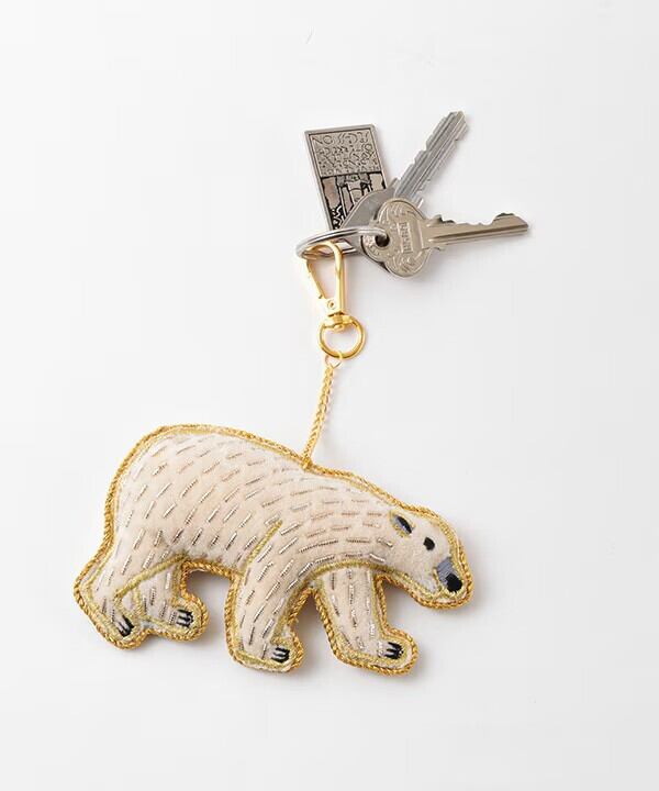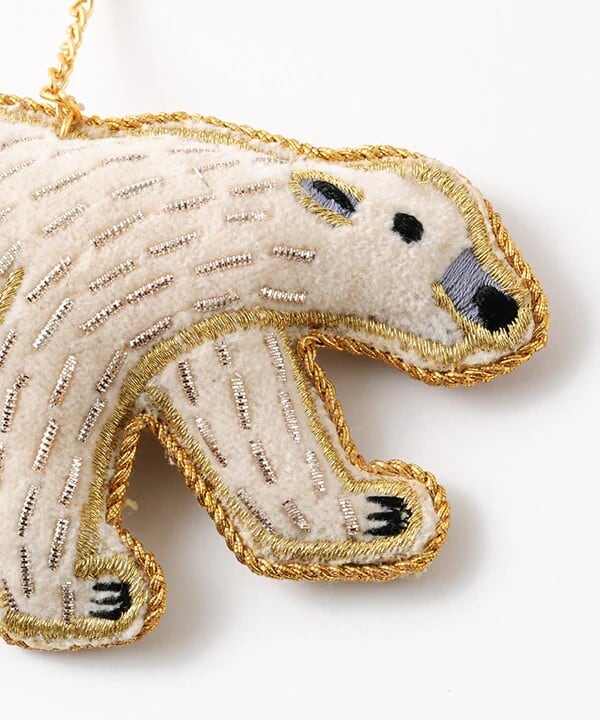 幸せをよぶ ザリ刺繍 バッグチャーム(シロクマ)INDIA