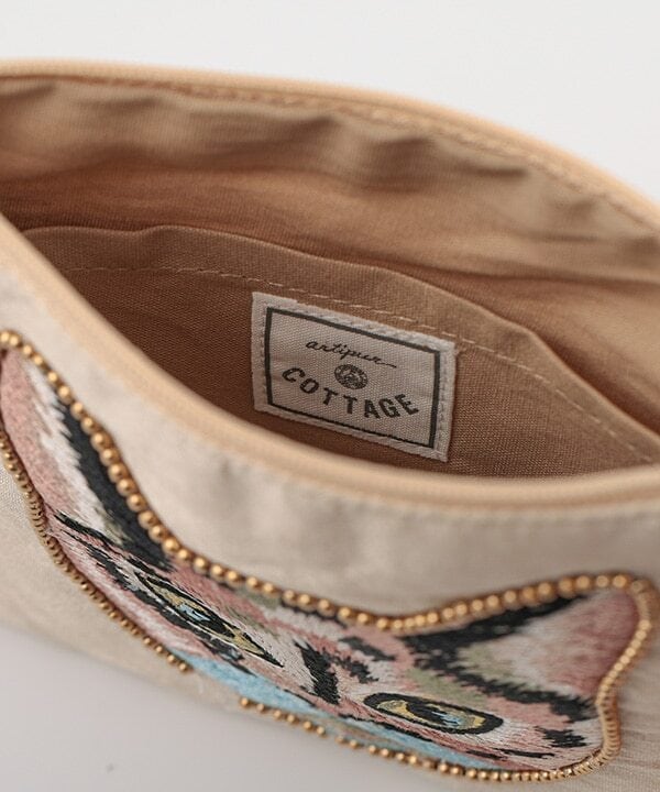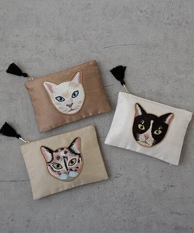 キャット刺繍フラットポーチ 17×13cm  ミックス猫