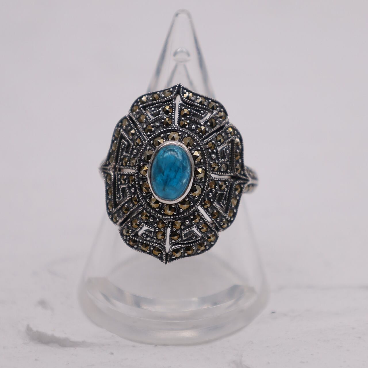 中央のアパタイトは鮮やかなブルーで、神秘的なニュアンスがあります。
