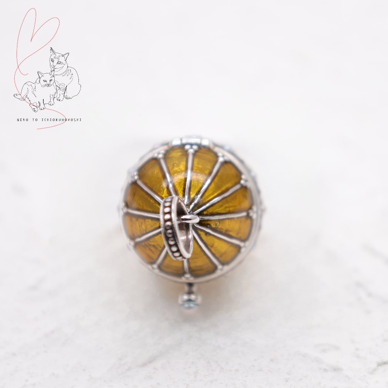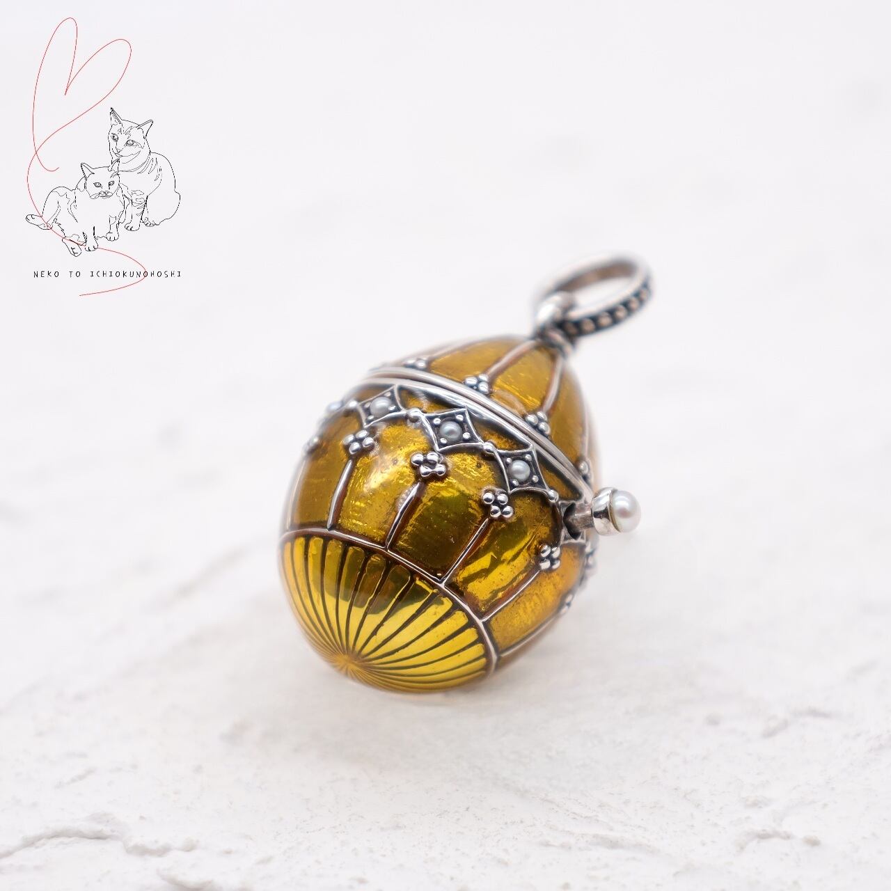 シードパールの装飾にイエローのエナメル仕上げが美しい、エッグロケットペンダントです。